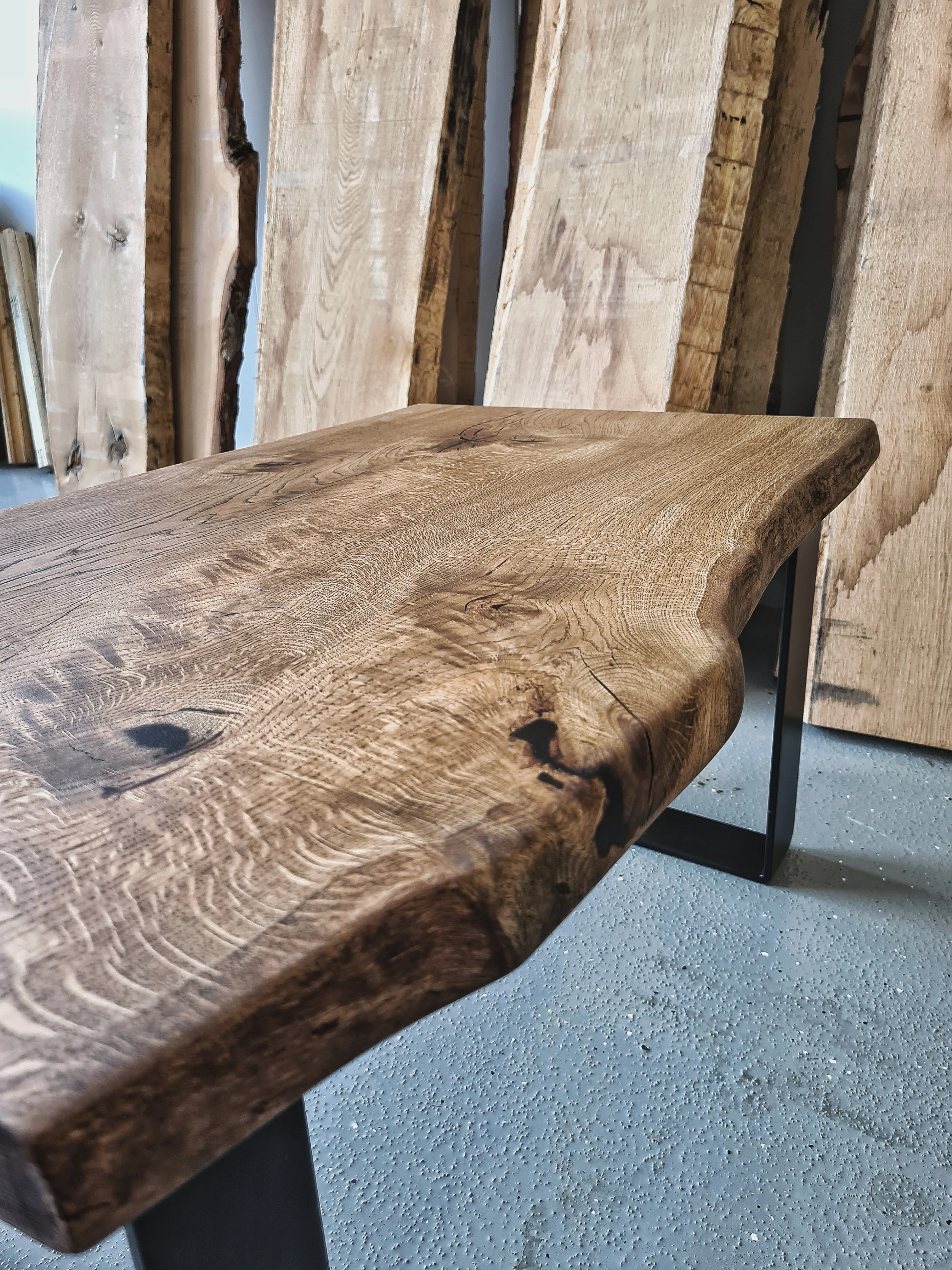 Tämän laadukkaan sohvapöydän kansi tehdään yli 100 vuotta vanhasta, yhdestä kokonaisesta tammilankusta. Lankun reunat jätetään puun luonnolliseen muotoon. Pinta on käsitelty tummalla kovaöljyvahalla, joka kestää erittäin hyvin kulutusta ja on kosteutta hylkivä. Tämä jykevä tammi tulee kestämään vähintään seuraavatkin 100 vuotta huonekaluna.